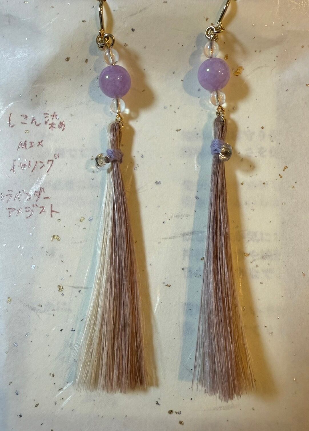 お麻守り耳飾り 紫根染めmix ラベンダーアメジスト【イヤリング】