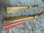 『黄昏の夕陽』 精麻お麻守りイヤリング 茜染め&黄金玉ねぎ染めmix