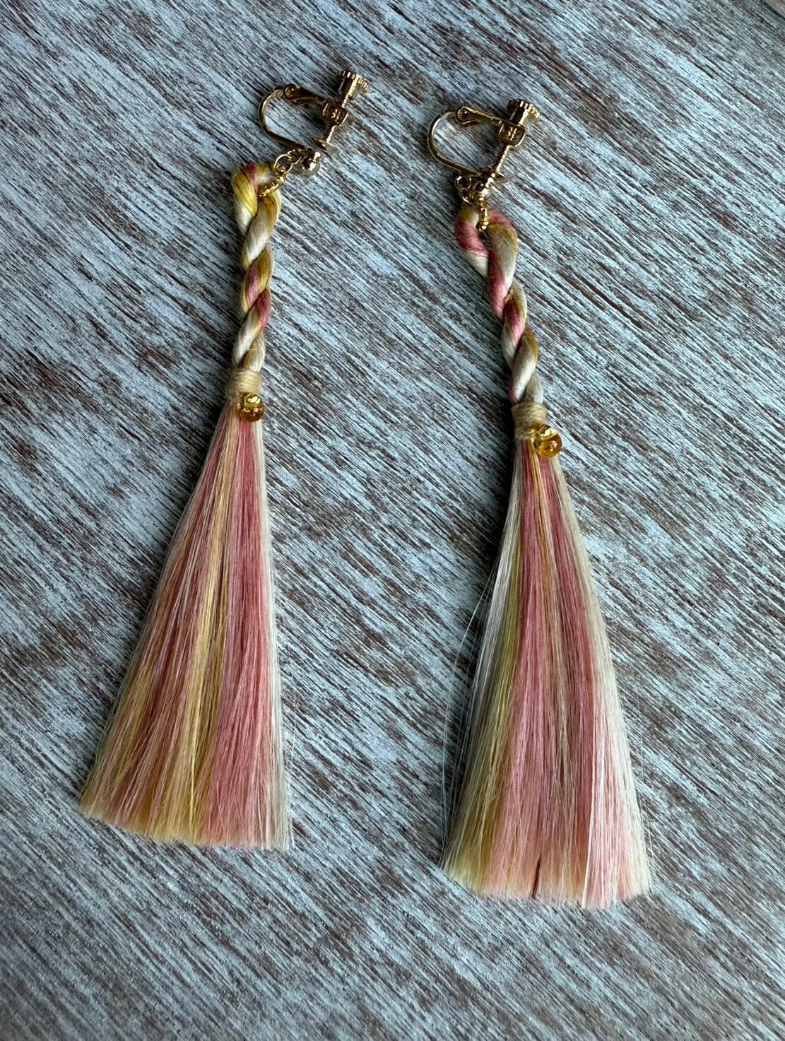 『黄昏の夕陽』 精麻お麻守りイヤリング 茜染め&黄金玉ねぎ染めmix