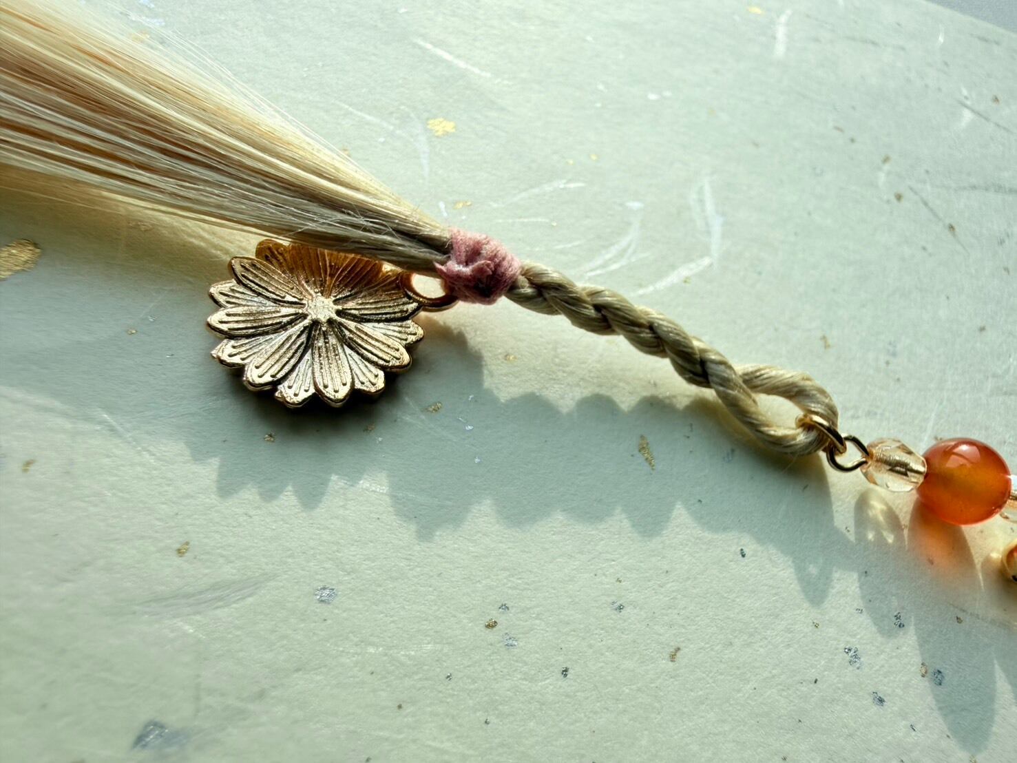精麻のやわらかな房が揺れ、表情に自然な明るさを添えてくれます。