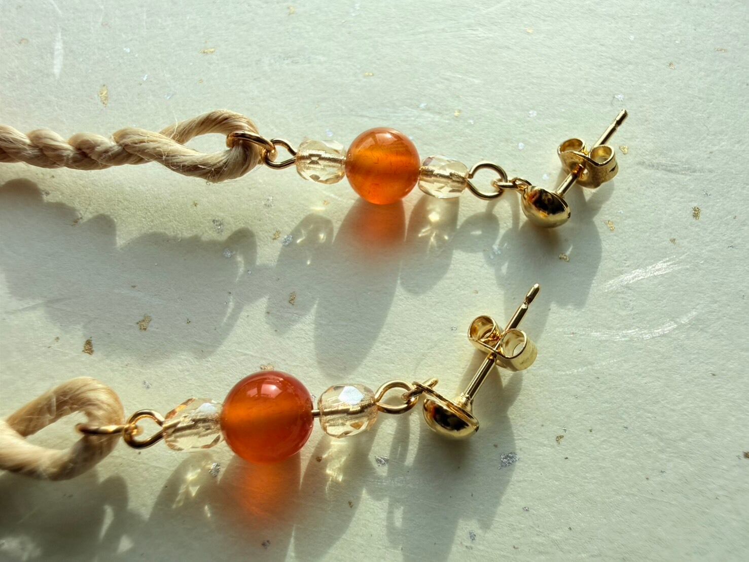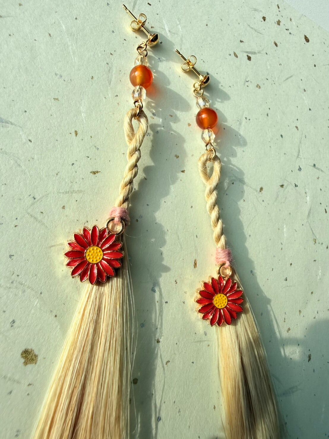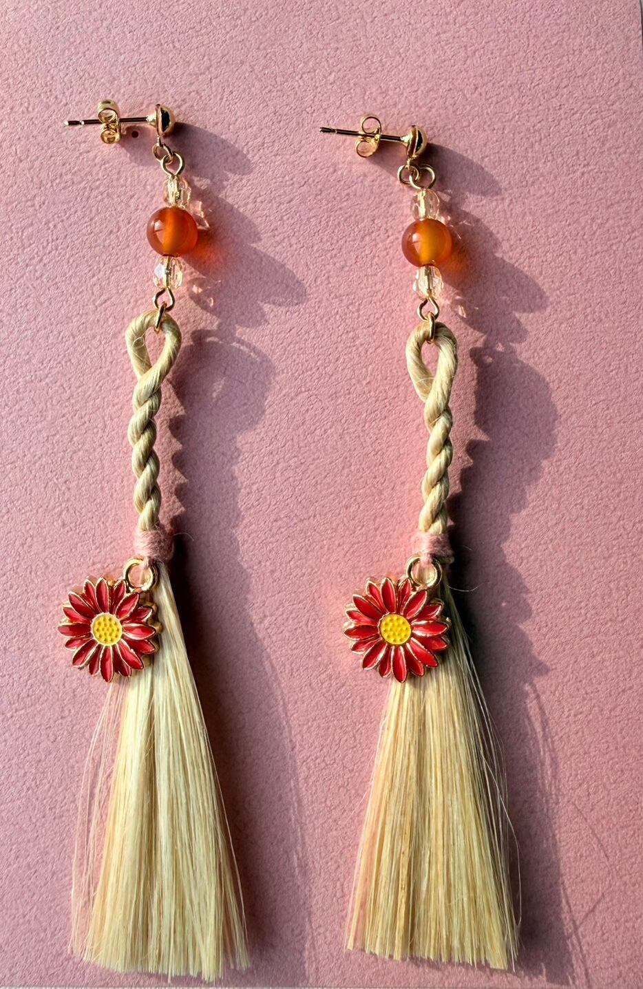 赤い花と精麻のタッセルをあわせた、晴れやかな耳飾りです。