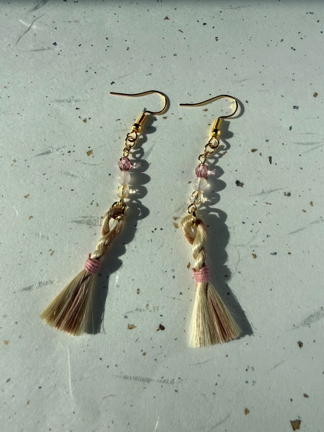 いちご染めのやさしい色合いをまとった、精麻mixのミニタッセルピアス。