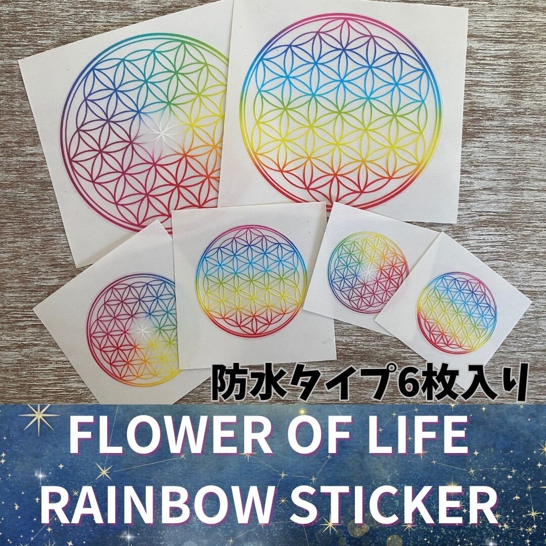 フラワーオブライフレインボーステッカー神聖幾何学防水タイプ6枚セット送料込み
