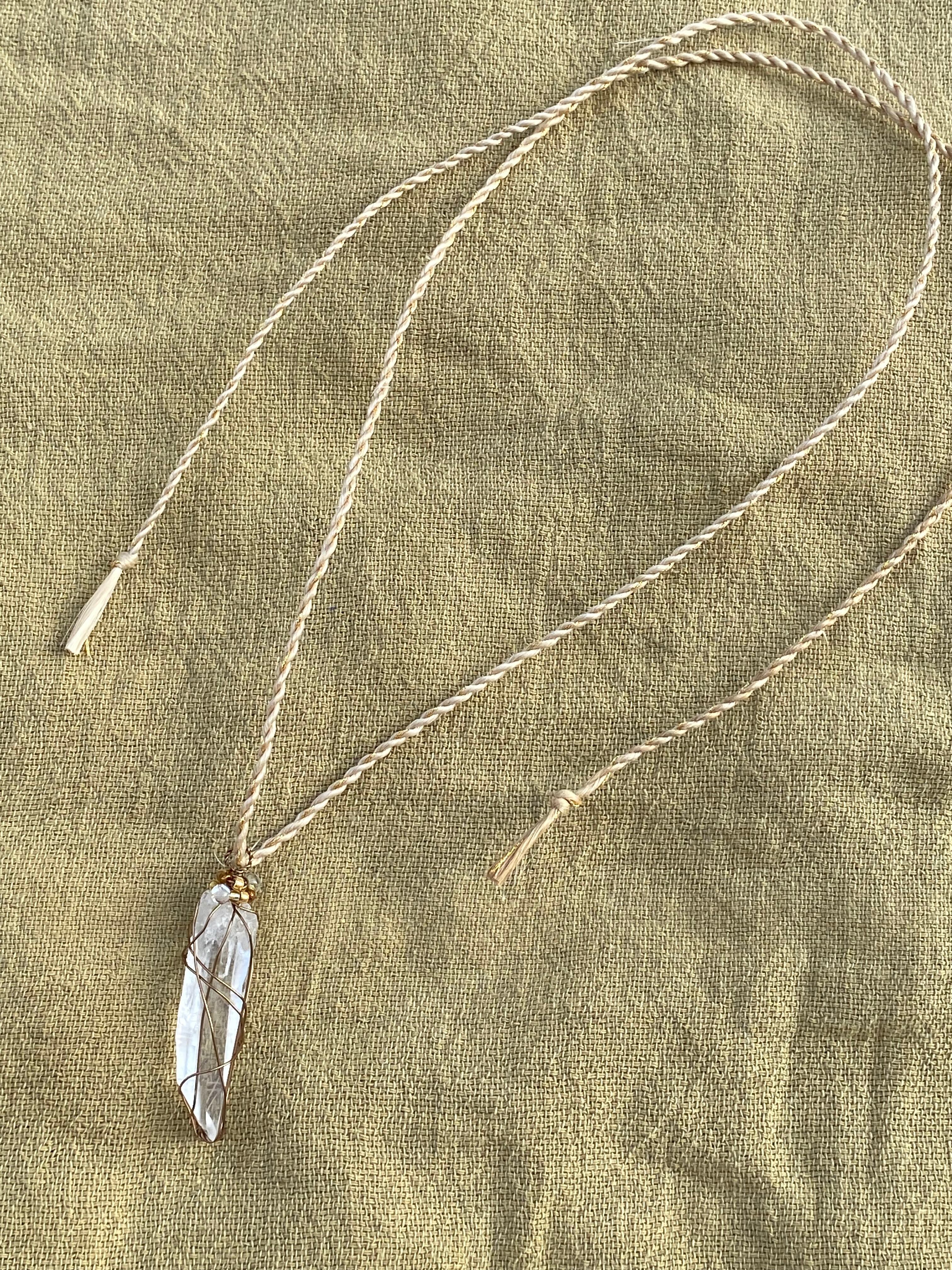 太古のレムリア時代の意志を継ぐクリスタルと言われる『レムリアンシード』聡明に煌めく天然の原石をジュエリーワイヤーを使いペンダントトップにしました。